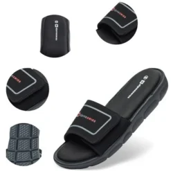 Gabe Memory Foam Slides By Alpine SwissProduct Features: Faux Nubuck Upper, EVA Outsole STYLISH – The Alpine Swiss Gabe memory foam sandals are casual and stylish. These athletic style slides are the perfect shoes for casual everyday wear. MEMORY FOAM COMFORT – These sandals feature thick memory foam insoles that mold to your feet for a personalized fit. The soft padded footbeds provide deep cushioning that will eventually contour to your feet for maximum comfort. ADJUSTABLE – The soft faux nubuck adjustable straps allow you to customize your fit. The easy slide entry is perfect to quickly and easily slide these on or off. DURABLE – The EVA foam outsoles have texture that provides traction and prevents slipping. The outsoles are thick and durable yet lightweight. FIT – Medium width, full sizes only, half sizes should round up. MSRP $45.00