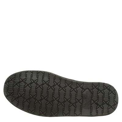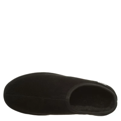 A new take on the classic suede step in slipper. Features an accented collar trim, wool blend lining with cushioned sheepskin footbed and TPR outsole.