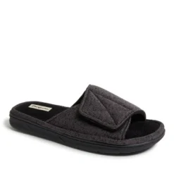 Designed with ultimate convenience in mind, Dearfoams Men’s Chase Marled Knit Adjustable Slide Slippers are a winning combination of charming, cozy and comfortable that will put a smile on your face even on the most hectic days. Dearforms men’s strap slide-on slippers feature a sweater knit upper with a cozy terry footbed, as well as an adjustable Velcro strap for a custom fit.