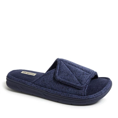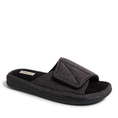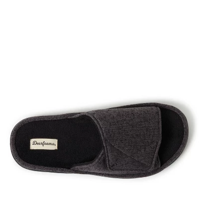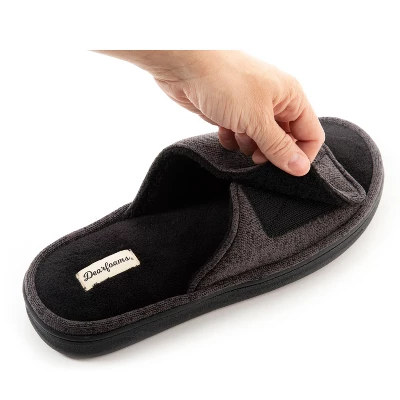 - ADJUSTABLE: Men’s Dearforms strap slide-on slippers feature a sweater knit terry upper with a cozy terry footbed. Features an adjustable Velcro strap for a custom fit!
