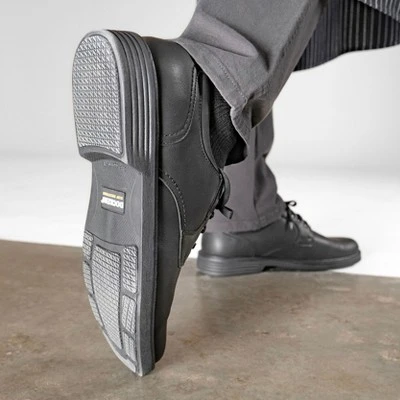 When it comes to work safety, a solid pair of dress shoes is a men’s necessity. Whether you’re wearing these men’s shoes for the front or the back of the house, the synthetic leather uppers, classic lace-up design, and detailed stitching make them an easy choice. You’ll never have to question your comfort or support because these shoes feature a lightweight, slip-resistant rubber outsole, a microfiber lining, and Dockers New Supreme massaging footbed. You need a pair of dress shoes that are ready to support you and elevate your style — you need the Dockers Tanner dress shoe to boost your confidence and your comfort, all day long.