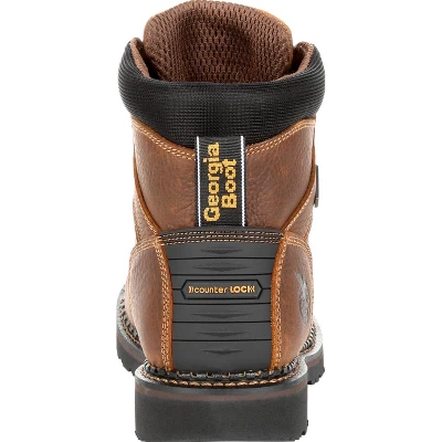 If you’re looking for a comfortable boot from a trusted brand, you can’t go wrong with the Georgia Giant. The Georgia Giant Revamp steel toe waterproof work boot has a full-grain SPR leather upper with dual functioning hook or eyelet hardware, a padded collar and tongue and removable leather Comfort Cover Tongue protector. The heel features a Counter Lock System designed to prevent heel slippage that also acts as a boot kick off. The Ergo-Fit steel toe cap is ergonomically designed to allow a better range of motion while still maintaining protection standards.The interior is lined in high performance mesh and is equipped with the Georgia Waterproof System. This system allows air to get in while keeping water and muck out when working in wet conditions. The removable AMP LT memory foam insole will cradle your feet in all day comfort.The foundation of this boot is comprised of a tempered steel shank for added durability, a cushioning EVA midsole and a slip and oil resistant polyurethane outsole. Constructed with the trusted Goodyear® welt, this boot is made to take on the wear and tear of many long work days.