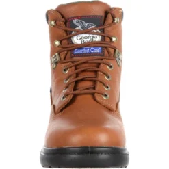 This men’s work boot is made of high-performance leather that resists anything you may encounter at the barn, the ranch or the work site.The SPRâ„¢ leather of this boot is superior to other leathers. Compared to traditional leather, it is roughly 3 times as strong and resists abrasions 2.5 times as well. This means you have better protection against barnyard and pasture chemicals in the Georgia Boot® Barracuda Gold Wedge Work Boot.Durability and performance continues with the “Poly Wedge ULTRA” outsole. This sole resists oils, chemicals and abrasions. It’s non-marking and still offers flexibility and cushioning for all-day wear.Goodyear® welt construction enhances the strength and flexibility of this men’s boot. There’s also a steel shank for stability.This 8-inch full-grain leather work boot is comfortable, too. It has a covered cushion insole and a padded gusset. This is a great work boot!