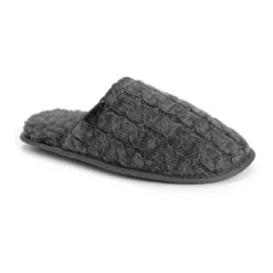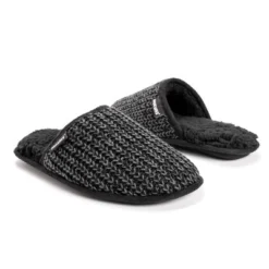 Slide on MUK LUKS Men’s Gavin Scuff Slippers for ultimate comfort. This knit slipper is lined with faux fur to keep toes warm and the foam insole will keep you comfortable while lounging indoors or outdoors. Wipe with a damp cloth. No bleach. Lay flat to dry. Imported.-TPR Indoor/Outdoor Sole-100% Polyester Faux Fur Insole-100% Acrylic Upper-100% Polyester Faux Fur Lining-Foam Insole-Men’s Whole Sizes S (8-9), M (9-10), L (11-12)-Multiple color options available