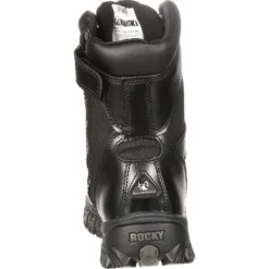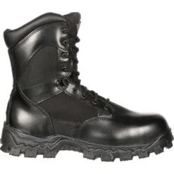 These hard-wearing Rocky® Alpha Force Waterproof Public Service Boots are made with black full-grain leather and 1000-denier nylon fabric. These lightweight, strong fabrics hold up  even in the most extreme working conditions. These public service boots have been built with Rocky waterproof construction; this creates a barrier that is guaranteed to keep water out, so your feet will remain completely dry. The Air-Portâ„¢ footbed is made from polyurethane and absorbs shock, but always reverts back to its earliest shape. The cushion footbed specifically targets your heel and metatarsal ridge, giving you support and comfort. A side zipper makes it easy to get these boots on and off quickly.Whether you’re looking for durable black work boots, tactical boots, a great pair of waterproof boots or superior law enforcement boots… These Rocky Alpha Force boots are the right choice to help you get the job done!