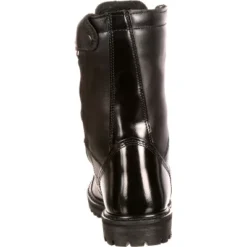The upper of these 10-inch Rocky Paratrooper boots is constructed from genuine full-grain leather. A smooth leather toe cap and heel have been added, which is great for those occasions when you want to give these black public service boots a nice spit-shine.These paratrooper boots have been triple-stitched and a riveted vamp has been added for strength and long-wear. The boot is topped by an integrated padded collar with a fully gusseted tongue, which will keep moisture, dirt and debris out of your boot. To make it easier for you to bend and squat down, a flex notch has been placed at the top of the vamp.Before you report for duty, you have to get up and get ready for the day. For those mornings when your pillow is feeling deprived, and you sleep in a little too long. A fully gusseted side zipper provides an easy way to get into and out of your boots.Are you concerned about keeping your feet dry? These public service boots have been built with Rocky Waterproof construction, which guarantees that your feet will remain dry. These Rocky Waterproof Side Zipper Jump Boots will also keep you warm. With the 200 grams of Thinsulate Insulation that has been installed, your feet will feel the warmth on those colder days.Underfoot, there is a contoured EVA footbed that provides long-lasting cushioning. This allows for you to be on your feet all-day long and not have aching feet at the end of your shift.These Rocky paratrooper boots are made with genuine Goodyear® welt construction to give them fantastic durability. A heavy-duty, oil-resistant rubber outsole assures that you have traction while you are walking or performing maneuvers on uneven terrain.If you are looking for a public service boot that will keep your feet comfortable, are easy to get into, and comfortable to wear for hours on end, then this Rocky waterproof jump boot is the right choice for you!