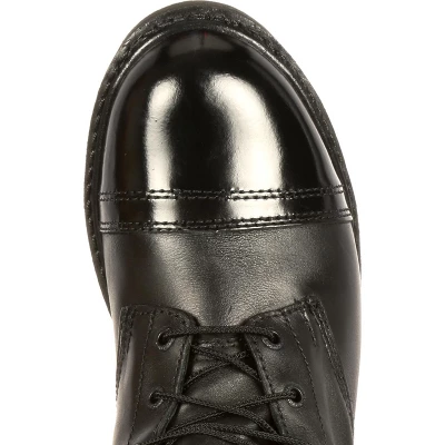 The upper of these 10-inch Rocky Paratrooper boots is constructed from genuine full-grain leather. A smooth leather toe cap and heel have been added, which is great for those occasions when you want to give these black public service boots a nice spit-shine.These paratrooper boots have been triple-stitched and a riveted vamp has been added for strength and long-wear. The boot is topped by an integrated padded collar with a fully gusseted tongue, which will keep moisture, dirt and debris out of your boot. To make it easier for you to bend and squat down, a flex notch has been placed at the top of the vamp.Before you report for duty, you have to get up and get ready for the day. For those mornings when your pillow is feeling deprived, and you sleep in a little too long. A fully gusseted side zipper provides an easy way to get into and out of your boots.Are you concerned about keeping your feet dry? These public service boots have been built with Rocky Waterproof construction, which guarantees that your feet will remain dry. These Rocky Waterproof Side Zipper Jump Boots will also keep you warm. With the 200 grams of Thinsulate Insulation that has been installed, your feet will feel the warmth on those colder days.Underfoot, there is a contoured EVA footbed that provides long-lasting cushioning. This allows for you to be on your feet all-day long and not have aching feet at the end of your shift.These Rocky paratrooper boots are made with genuine Goodyear® welt construction to give them fantastic durability. A heavy-duty, oil-resistant rubber outsole assures that you have traction while you are walking or performing maneuvers on uneven terrain.If you are looking for a public service boot that will keep your feet comfortable, are easy to get into, and comfortable to wear for hours on end, then this Rocky waterproof jump boot is the right choice for you!