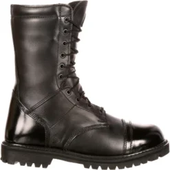 The upper of these 10-inch Rocky Paratrooper boots is constructed from genuine full-grain leather. A smooth leather toe cap and heel have been added, which is great for those occasions when you want to give these black public service boots a nice spit-shine.These paratrooper boots have been triple-stitched and a riveted vamp has been added for strength and long-wear. The boot is topped by an integrated padded collar with a fully gusseted tongue, which will keep moisture, dirt and debris out of your boot. To make it easier for you to bend and squat down, a flex notch has been placed at the top of the vamp.Before you report for duty, you have to get up and get ready for the day. For those mornings when your pillow is feeling deprived, and you sleep in a little too long. A fully gusseted side zipper provides an easy way to get into and out of your boots.Are you concerned about keeping your feet dry? These public service boots have been built with Rocky Waterproof construction, which guarantees that your feet will remain dry. These Rocky Waterproof Side Zipper Jump Boots will also keep you warm. With the 200 grams of Thinsulate Insulation that has been installed, your feet will feel the warmth on those colder days.Underfoot, there is a contoured EVA footbed that provides long-lasting cushioning. This allows for you to be on your feet all-day long and not have aching feet at the end of your shift.These Rocky paratrooper boots are made with genuine Goodyear® welt construction to give them fantastic durability. A heavy-duty, oil-resistant rubber outsole assures that you have traction while you are walking or performing maneuvers on uneven terrain.If you are looking for a public service boot that will keep your feet comfortable, are easy to get into, and comfortable to wear for hours on end, then this Rocky waterproof jump boot is the right choice for you!
