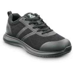 Mesh and TPU upper. DryKick splash-resistant membrane in toe area protects against food and liquid spills in the workplace. Mesh lining. PU and memory foam footbed. PU midsole. SR Max MaxTRAX oil and slip-resistant rubber outsole. Soft toe. No safety toe cap.