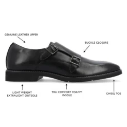 Add some swagger to your step with the Artemis dress shoe by Thomas & Vine. This genuine leather formal dress shoe is thoughtfully detailed with monk strap styled buckles and a square toe for a bold but classic look. Comfort details like a 12 mm Tru Comfort Foam™ footbed, an elastic gusset, a flexible ExtraLight® outsole, and a cushioned collar finish the design for the perfect fit.