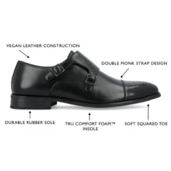 A dapper look you can style with your best suits, the Atticus by Vance Co. This must-have monk strap dress shoe is topped with soft vegan leather and buckled straps for an upscale look. A 6 mm Tru Comfort Foamâ„¢ footbed and an elastic gusset make them super comfortable.