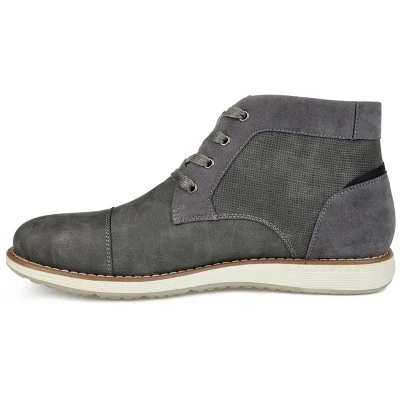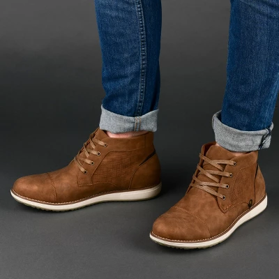 A casual but always high-minded look, the Chukka boot. The Austin features premium faux leather uppers cleverly contrasted with embossed accents on either side. A lace-up closure, cap toe, cushioned footbed, and durable rubber outsole complete this charming look by Vance Co. With a classic easy style like this in your rotation, you’re certain to find yourself wearing them on repeat.