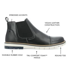 An easy but stylish pull-on boot you can throw on with anything, the Waylon boot by Vance Co. This vegan leather design offers easy entry with stretch gore accents at the ankles. A 6 mm Tru Comfort Foamâ„¢ insole and durable rubber sole ground the look for extra comfort.